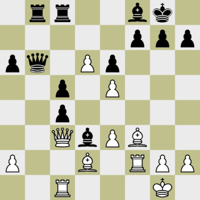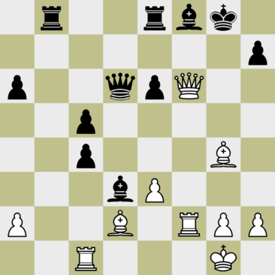29.Df7+ Kh8 30.Lxe6 schlug Arvid nach der Partie vor. Ich glaubte während der Partie, dass er die Diagonale verstopfen kann. 30…Txe6 (30…Lg7 ist die sichere Variante 31.Lxc4) 31.Lc3+ Te5 32.Tf6! hatte ich leider nicht gefunden; 29.Lc3 e5 30.Df7+ Kh8 31.Tf6 Dd8 hält dagegen alles zusammen. 32.Dxe8 Dxe8 33.Txf8+ Dxf8 34.Lxe5+ Dg7 35.Lxg7+ Kxg7 sieht dann toll aus, ist aber schlechter für Weiß.