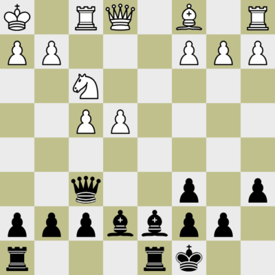 Hier hatte ich das Gefühl, dass etwas schiefgegangen war. Tatsächlich ist die Stellung noch in Ordnung. 11.Dc3 Dxc3 12.Sxc3 Le6 13.Td1 Ld6 14.Le3 0-0-0 war Lechtynsky-Beljawski, Baku 1980.