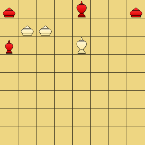 Ich hoffe, dass ich den Titel dieser Aufgabe richtig übersetzt habe. Die Boote schwimmen auf b7 und c7 — beziehungsweise auf a8 und h8. Sie entsprechen vollständig den Türmen im Schach. Auf e6 und e8 stehen die Anführer (oder die Könige) und an dieser Stelle sollte ich besser erwähnen, dass es im Makruk keine Rochade gibt. Auf a6 finden wir einen Baum. Ich nehme an, dass diese Mehrfigur nicht zum Vorteil für Schwarz ist.