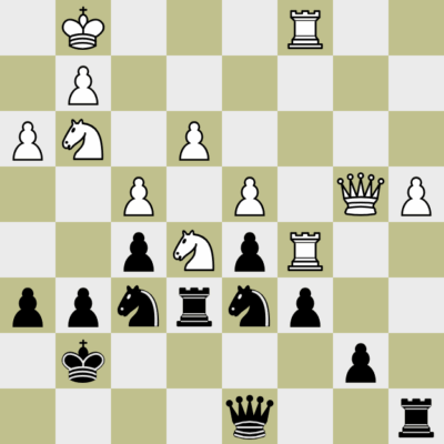 Ich hätte hier eher h5 erwogen, mit der Idee h4 Sg3 zieht weg Sfe4 Tc5 zieht weg Da5. Weiß kann nicht gut selbst h4 spielen, dann kommt Sg4.