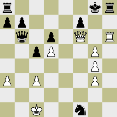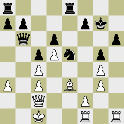 Ansonsten bin ich stolz, immerhin ziemlich alles gesehen zu haben (z.B. dass 24. … Sxg4 besser, und 25. … Sxe3 ein Doppelfragezeichenzug ist).