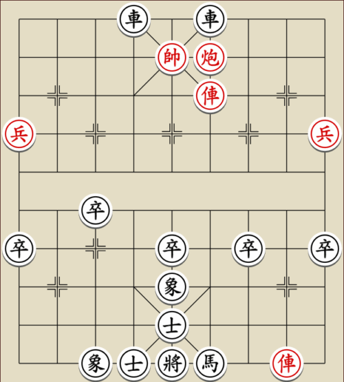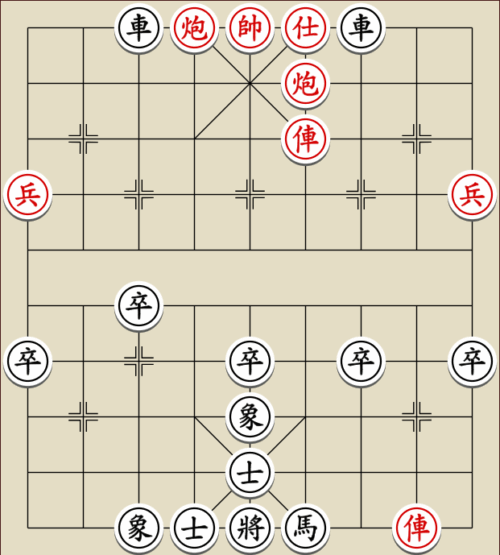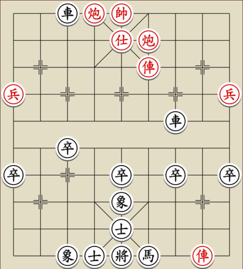 Eine meiner seltenen Heldentaten auf dem Xiangqiserver – Gewinnpartien zeigt man ja doch lieber. Ich hatte hier (hoangngoc73 – alms, playok.com 2012) zwar eine Figur weniger, aber auch ein paar Soldaten einkassiert und vor allem die rote Verteidigung dezimiert. Zuletzt war 25.R8+2 mit der offensichtlichen Drohung C6+8 geschehen, es musste jetzt also schnell gehen. Ich spielte