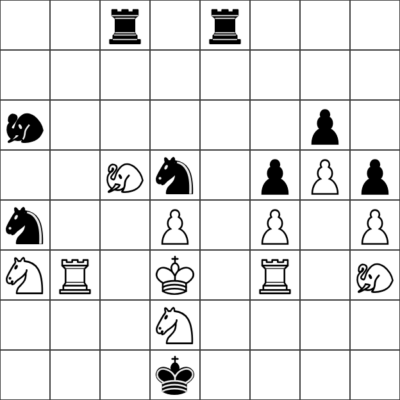 Aufgabenstellung und Lösung stehen wahrscheinlich über und neben der Handzeichnung oben und müssen erraten werden. Ich nehme an, dass es nicht darum geht, den schwarzen König einzügig mattzusetzen. Auf a6, c5 und h3 sehen wir einen Alfil, der diagonal auf das übernächste Feld zieht und dabei auch eigene oder fremde Figuren überspringen kann. In der Diktion des Problemschachs: ein 2:2-Springer.