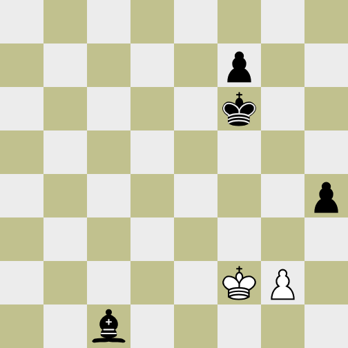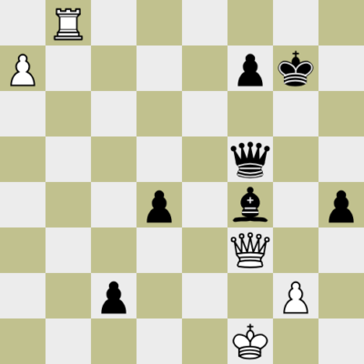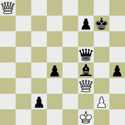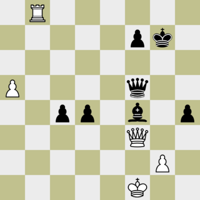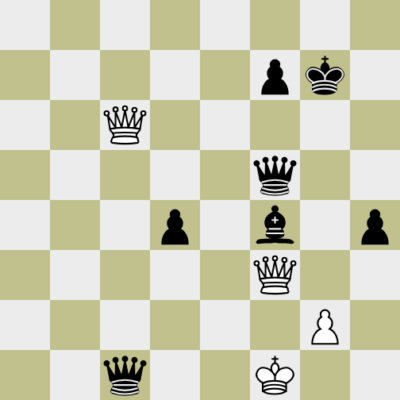 Weiß hat eine Dame mehr auf dem Brett und ist am Zug. Trotzdem ist er ohne Verteidigung. Es gibt kein sinnvolles Schachgebot und die schwarze Umwandlung ist nicht zu verhindern.
