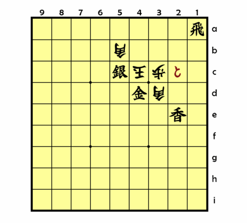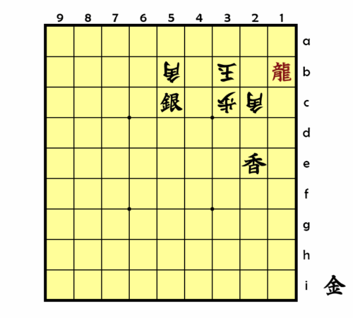 Sehr ökonomisch. Die schwarze Lanze nimmt dem weißen König die gesamte 2. Linie. Der eingesetzte Goldgeneral setzt Schach und bestreicht alle weiteren Felder, die dem weißen König zugänglich sind.