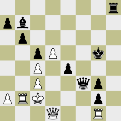 39.Dxa7 hade jag inte alls räknat på 39…De5!! och svart vinner i alla varianter (39…Kxg5 duger också) 40.Tc1 (40.Tb3 Kxg5 plan Txf1) 40…Kxg5 plan Tf3+