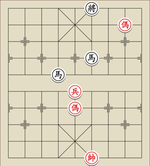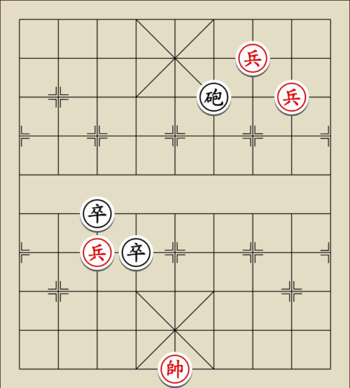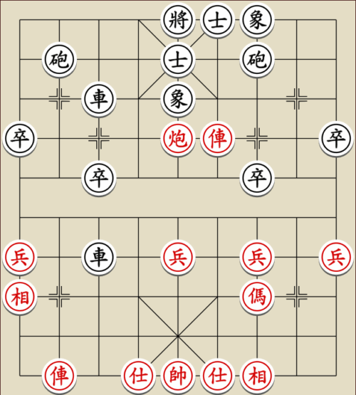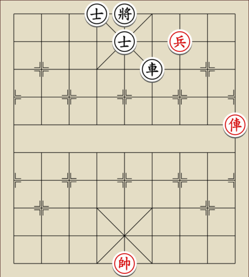 Matt. Die rote Kanone blockiert die gesamte schwarze Verteidigung. Da nach 1.R4+2 aber wirklich R8+8 droht und auf 1…R3-1 (um die schwarze Kanone zu verteidigen) 2.R4=3 sowie auf 1…C2=3 2.R8+9 C3-1 3.R4=3 funktioniert, gewinnt Rot eine schwarze Kanone und bleibt mit einem Pferd im Vorteil.
